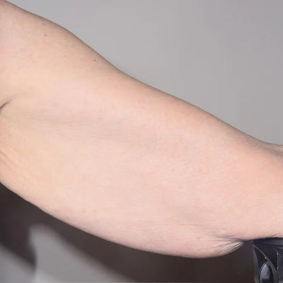 Mujer, 61 años. Régimen: El paciente usó en ambos brazos TransFORM Body Treatment® dos veces al día y no se realizó ningún procedimiento.Equipo de imágenes: las fotos se tomaron con la cámara QuantifiCare LifeViz® Infinity y el software validado.Plazo: 8 semanasLas fotografías no están retocadas. Los resultados individuales pueden variar. Datos archivados en ALASTIN Skincare®